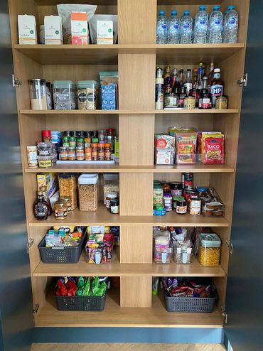 Kitchens organised with suitable storage solutions labelled, so you can clearly see what you have so you never need to overbuy.